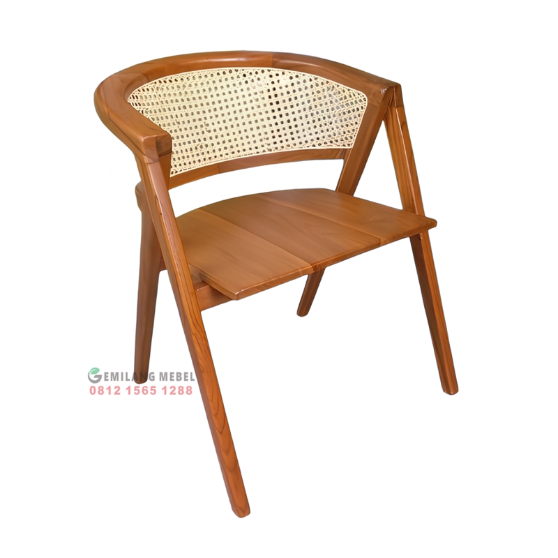 Kursi cafe dibuat dari kayu jati dengan sandaran anyaman rotan yang pada frame kayu jati yang memberi mewah. Finishing natural jati yang menonjolkan serat kayu emas kecokelatan. Tinggi duduk ±45 cm dan sandaran sedikit melengkung mengikuti punggung yang membuat nyaman duduk dalam waktu yang lama. Semua produk kami dikerjakan secara handmade oleh tukang kayu berpengalaman dari Jepara untuk memastikan keindahan, kekuatan, dan ketahanan dalam penggunaan jangka panjang.