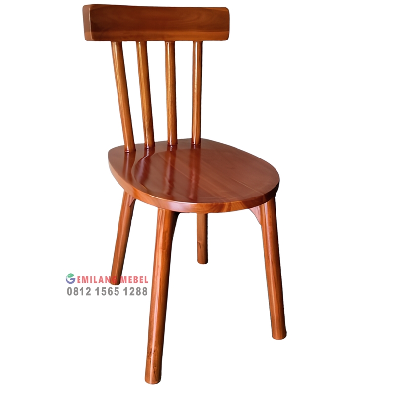 Kursi ini unik dirancang untuk cafe model terbaru dari bahan kayu jati solid yang berkualitas tinggi. Finishing melamine glossy dengan warna natural kayu jati yang memberikan kesan mewah dan tahan. Dibuat oleh produsen kursi cafe di Jepara dengan harga bersahabat langsung dari pengrajin tanpa perantara. Tampilan yang alami dan hangat, cocok untuk berbagai konsep interior cafe, baik modern maupun klasik. Dimensi kursi Panjang 41 cm x Lebar 48 cm x Tinggi 79 cm yang nyaman untuk duduk berlama lama di cafe.