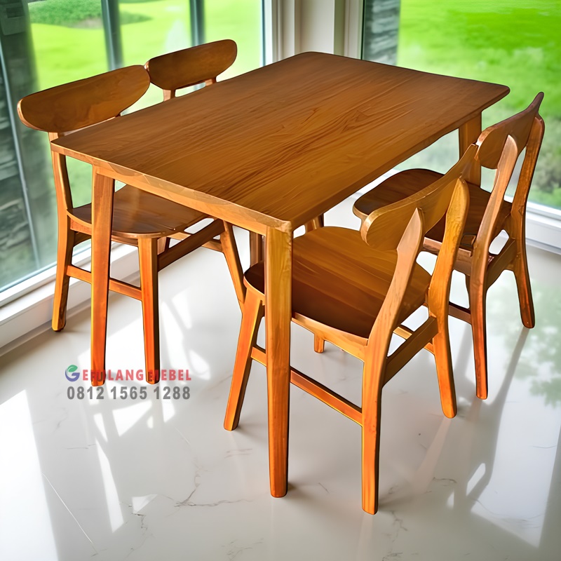 Meja makan dengan 4 kursi untuk area Jakarta dari pengrajin mebel Jepara hadir dengan desain elegan dan kualitas terbaik karena dibuat langsung dari kayu jati pilihan yang kokoh dan awet. Cocok untuk melengkapi ruang makan rumah, apartemen, restoran, maupun kafe modern di wilayah Jakarta dan sekitarnya. Produk ini dikerjakan langsung oleh tenaga ahli berpengalaman dengan detail serta finishing rapi sehingga tampak mewah, kuat, dan tahan lama. Kami tawarkan dengan harga terjangkau dan kualitas tinggi serta pengiriman cepat ke Jakarta dan area sekitarnya.